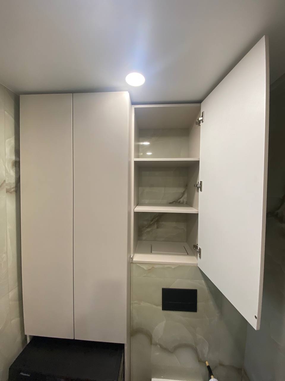 - Мебель в санузлах изготовлена из МДФ в эмали, что гарантирует устойчивость к влаге, долговечность и аккуратный внешний вид.
