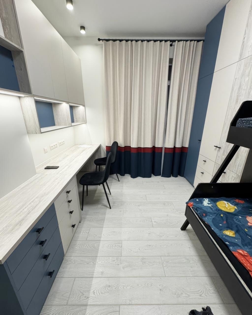 Результат — функциональная, сбалансированная и удобная детская комната, в которой комфортно жить, учиться и поддерживать порядок.