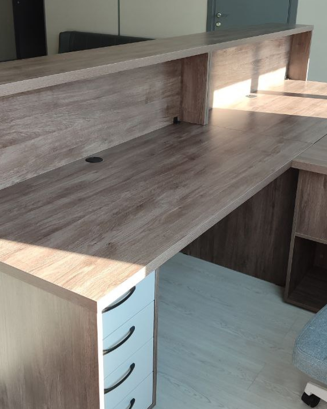 Корпус выполнен из ЛДСП толщиной 16 мм, что обеспечивает оптимальный баланс прочности и практичности для офисной мебели.